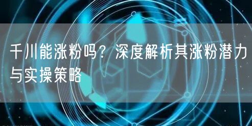 千川能涨粉吗?深度解析其涨粉潜力与实操策略